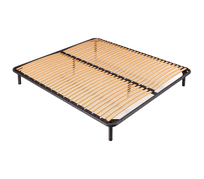 Найоптимальніша основа для матраца - це металевий каркас з буковими ламелями. Каркас виготовлений із металевого профілю 25х25х1,5 мм, пофарбований порошковою фарбою (стандартний колір чорний). На односпальний каркас йде п'ять опор, що регулюються по висоті (від 235 мм до 250мм). Чотири опори розміщуються по периметру, одна на центральній царзі. На двоспальний каркас йде шість ніжок, чотири по периметру, а дві посередині каркаса на рівній відстані один від одного. Відмінна риса «ПОСИЛЕНОЇ» серії - це відстань між ламелями. У цій серії ламелі знаходяться на відстані 2,5 см один від одного.