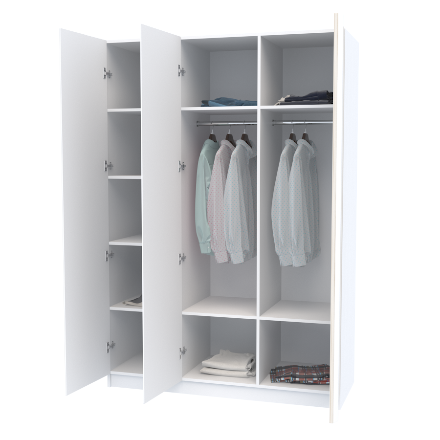 - всередині шафа поділена на штанги (короткий одяг) та полиці;