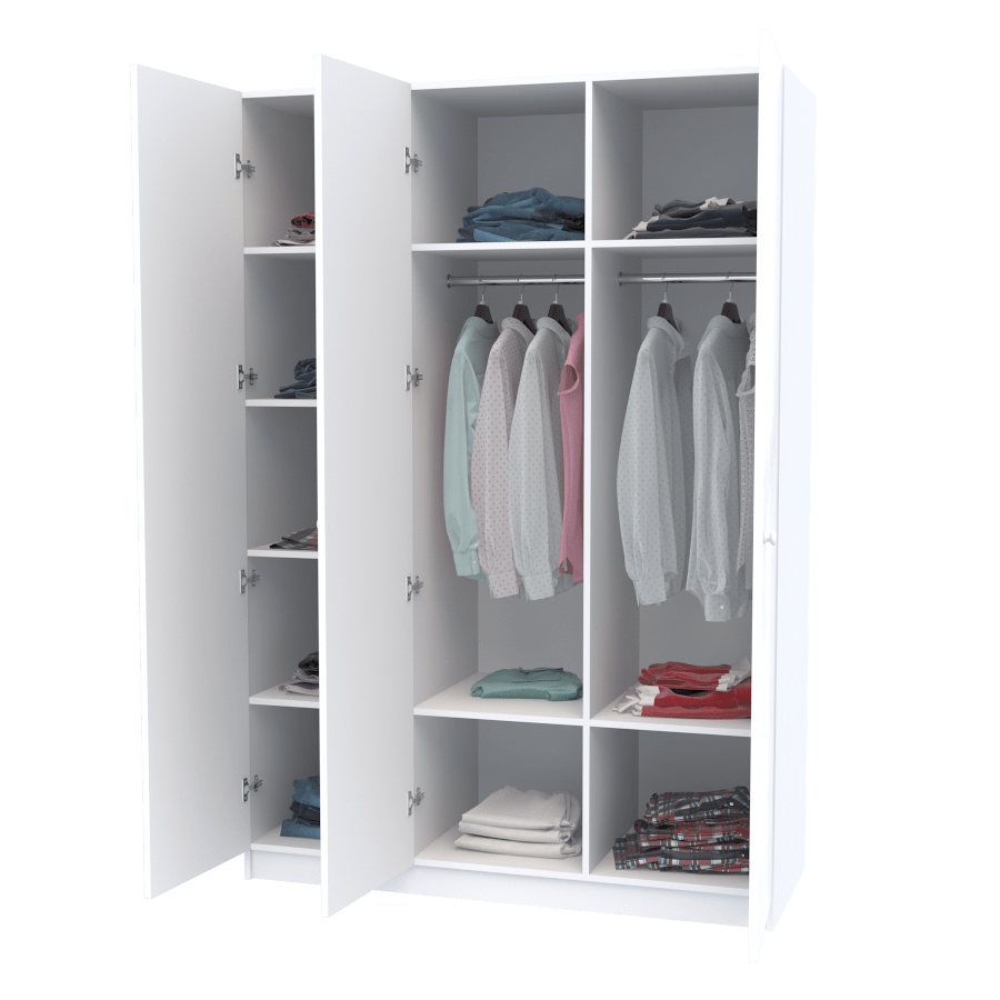 - завіси Clip Top blumotion (плавне закривання) - усередині шафа розділена на штанги (короткий одяг) та полиці;