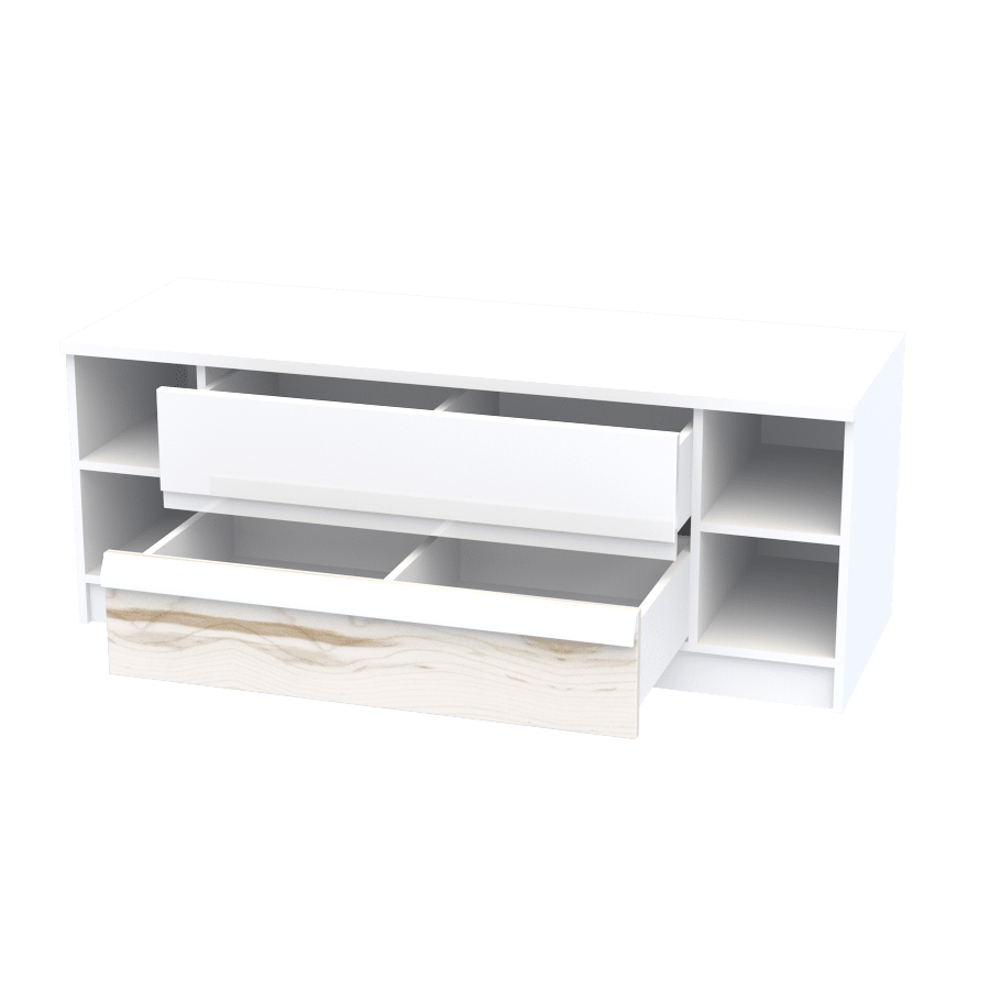 Корпус: ДСП Swisspan, біла гладка Еліт; Фасад: МДФ з поєднанням деревотекстурного ДСП Swisspan natur.