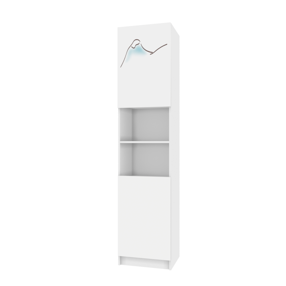 ДСП Swisspan, біла гладка Еліт; Фасад МДФ боку звернено, малюнок напилення фарбою з фрезованим патинуванням.
