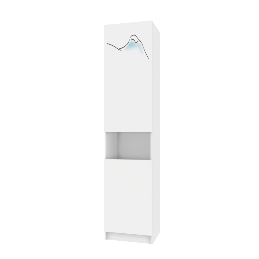 ДСП Swisspan, біла гладка Еліт; Фасад МДФ боку звернено, малюнок напилення фарбою з фрезованим патинуванням.