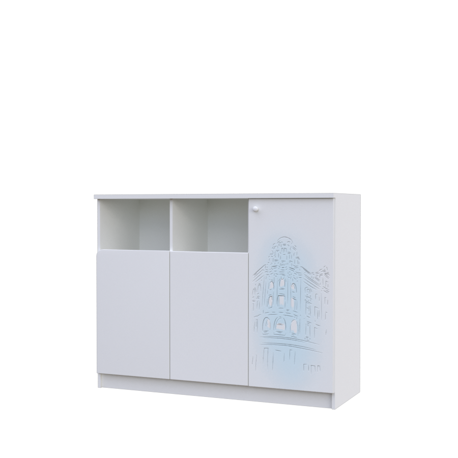 - Корпус виготовлений із ДСП класу Е1 Swisspan, товщина 18мм, кромка товщиною 2мм. Колір Білий або дуб Сан Маріно на вибір;
