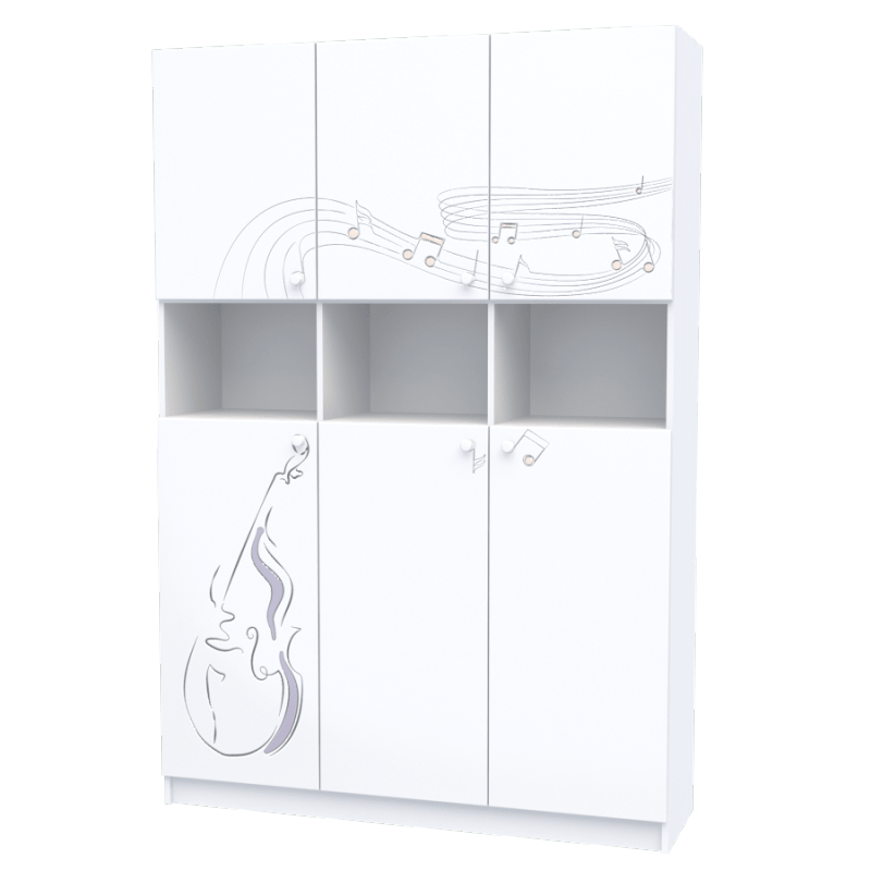 Корпус: ДСП Swisspan, біла гладка Еліт; Фасад: МДФ мальований, малюнок трафаретний з фрезерованим патинуванням.
