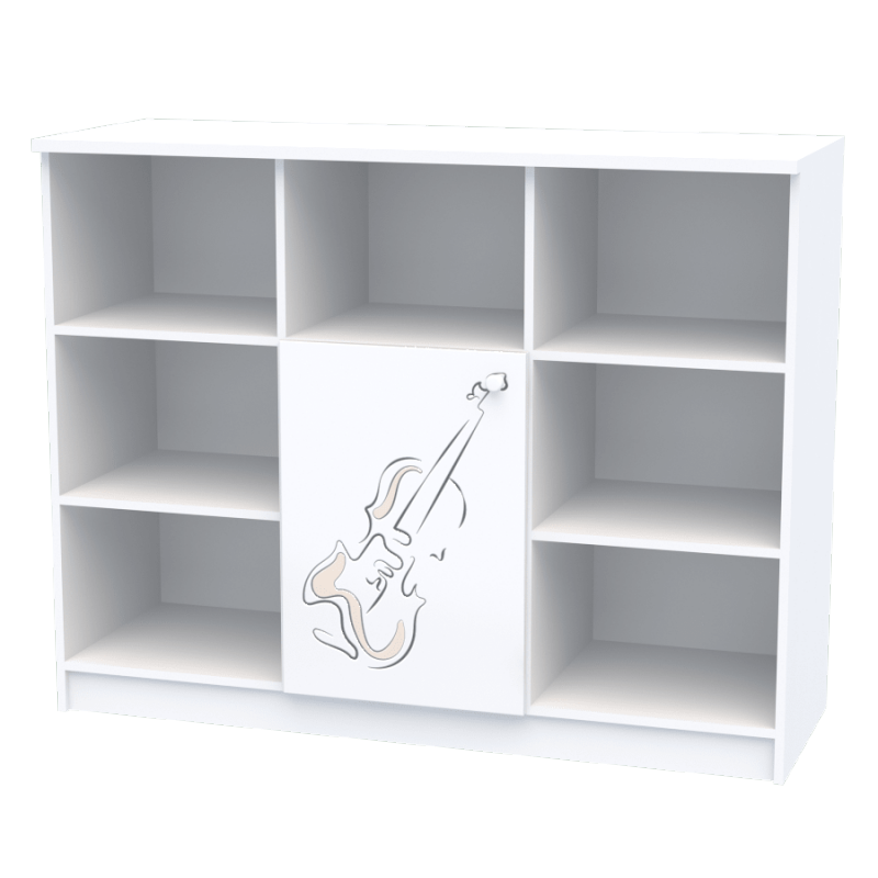 Корпус: ДСП Swisspan, біла гладка Еліт; Фасад: МДФ мальований, малюнок трафаретний з фрезерованим патинуванням.