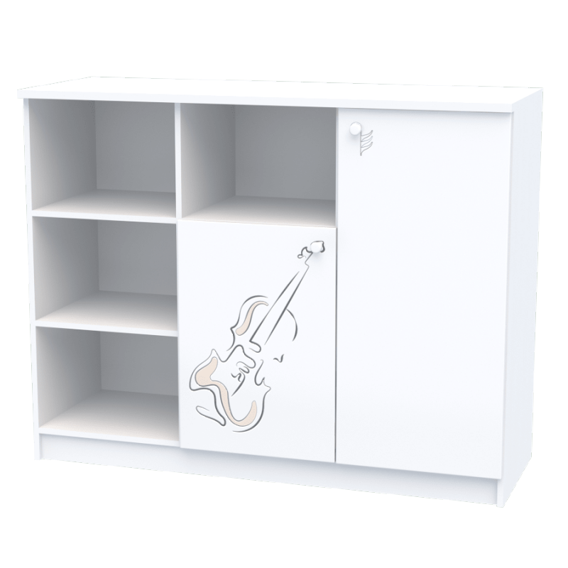 Корпус: ДСП Swisspan, біла гладка Еліт; Фасад: МДФ мальований, малюнок трафаретний з фрезерованим патинуванням.
