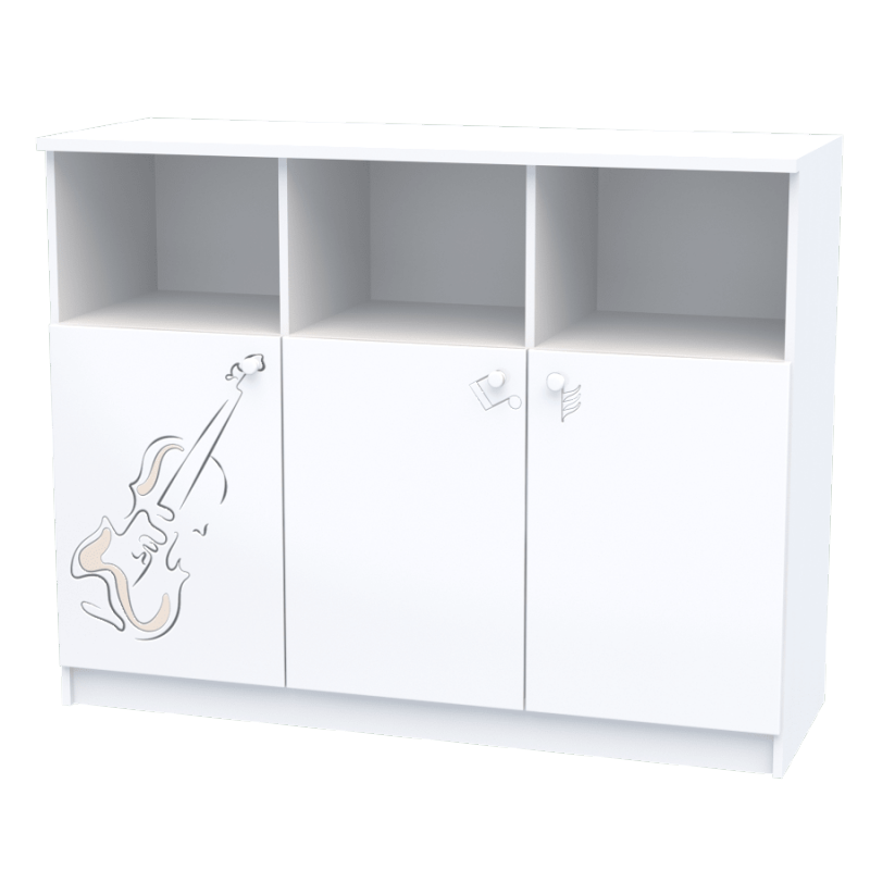 Корпус: ДСП Swisspan, біла гладка Еліт; Фасад: МДФ мальований, малюнок трафаретний з фрезерованим патинуванням.