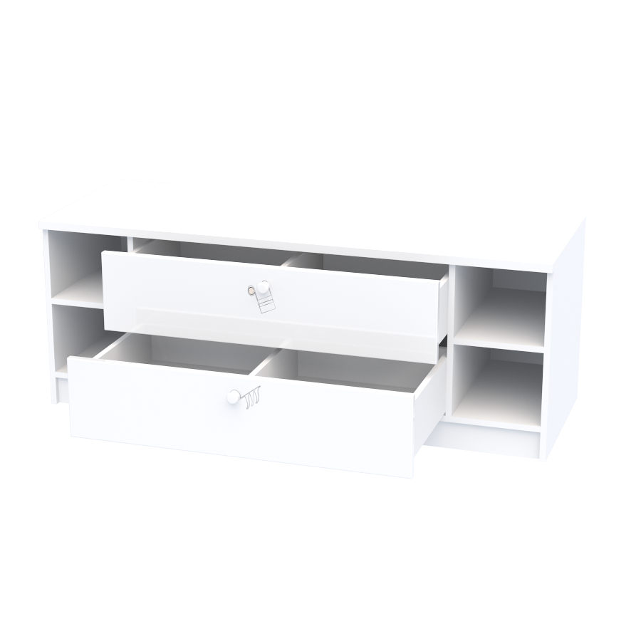 Корпус: ДСП Swisspan, біла гладка Еліт; Фасад: МДФ мальований, малюнок трафаретний з фрезерованим патинуванням.