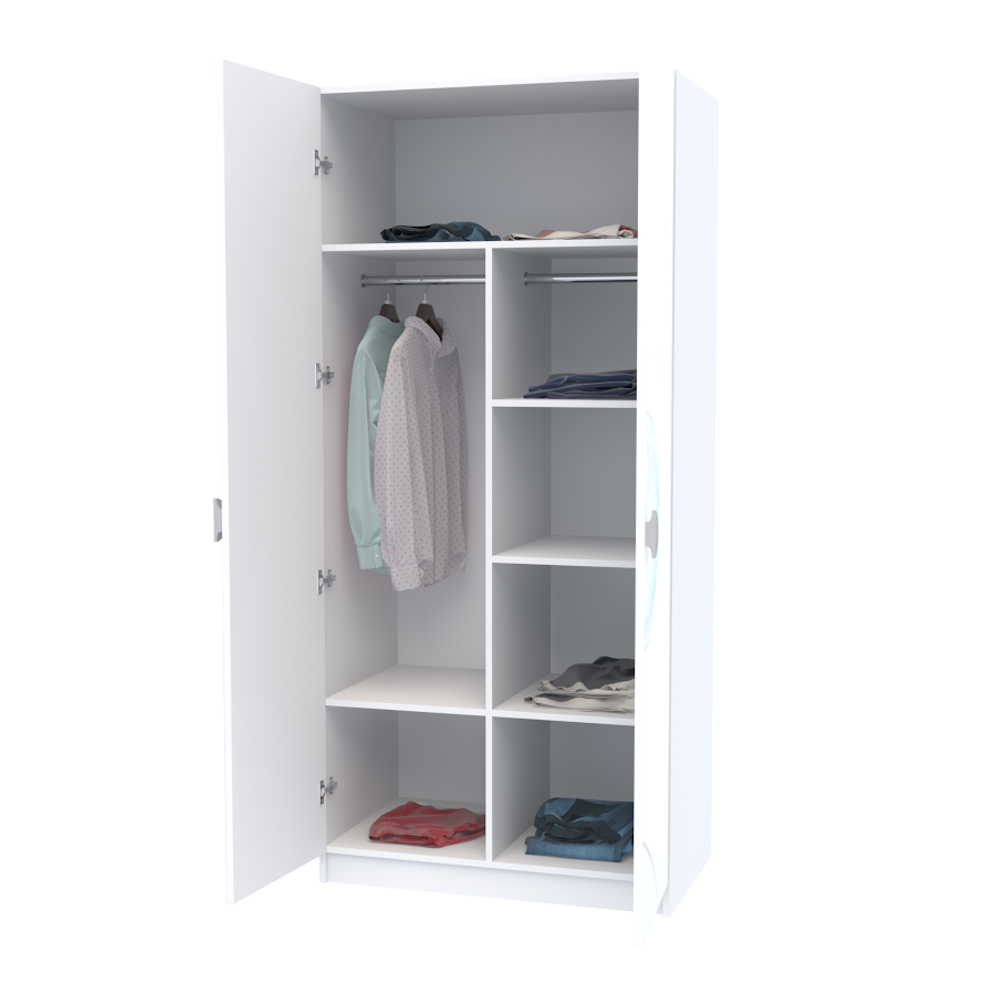 - всередині шафа поділена на штанги (короткий одяг) та полиці;