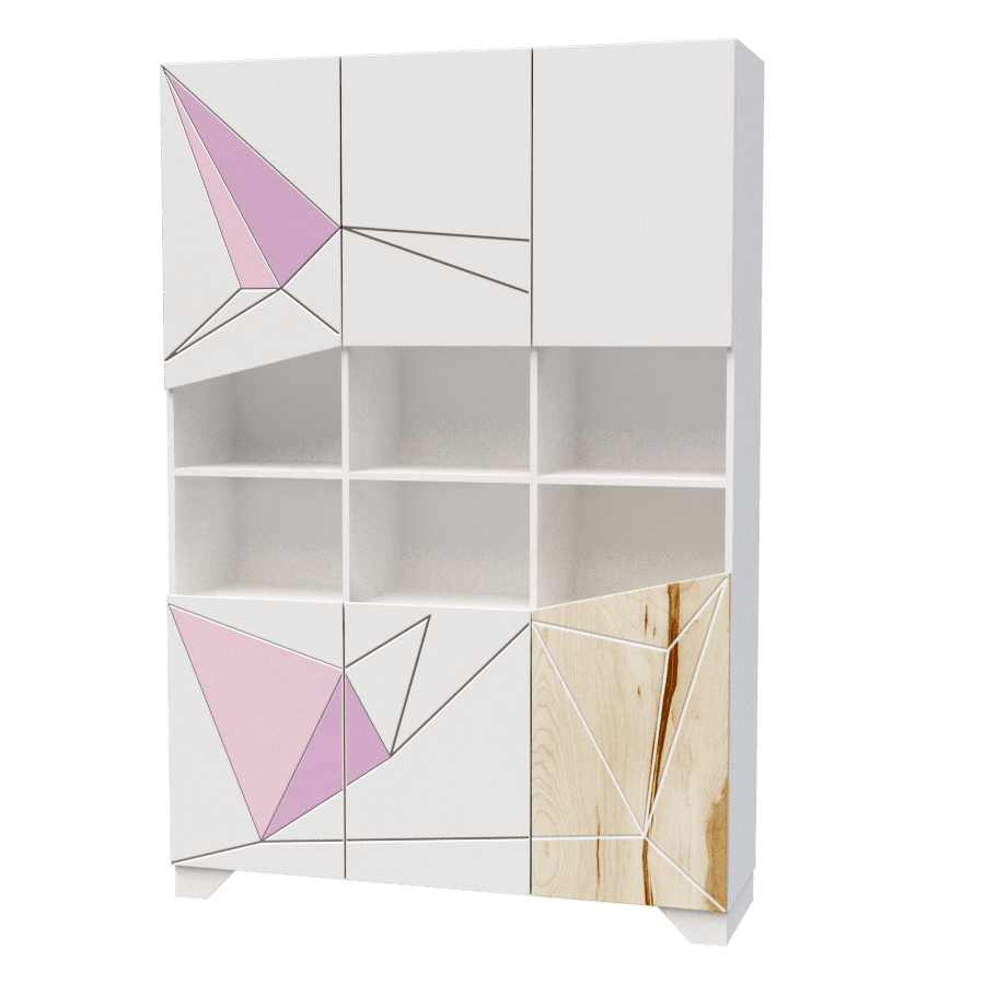 Фасад: МДФ завтовшки 19мм. мальований з поєднанням деревотекстурного ДСП Swisspan natur, малюнок трафаретний з фрезерованим патинуванням.