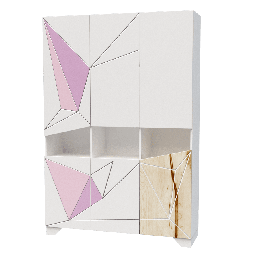 Фасад: МДФ завтовшки 19мм. мальований з поєднанням деревотекстурного ДСП Swisspan natur, малюнок трафаретний з фрезерованим патинуванням.
