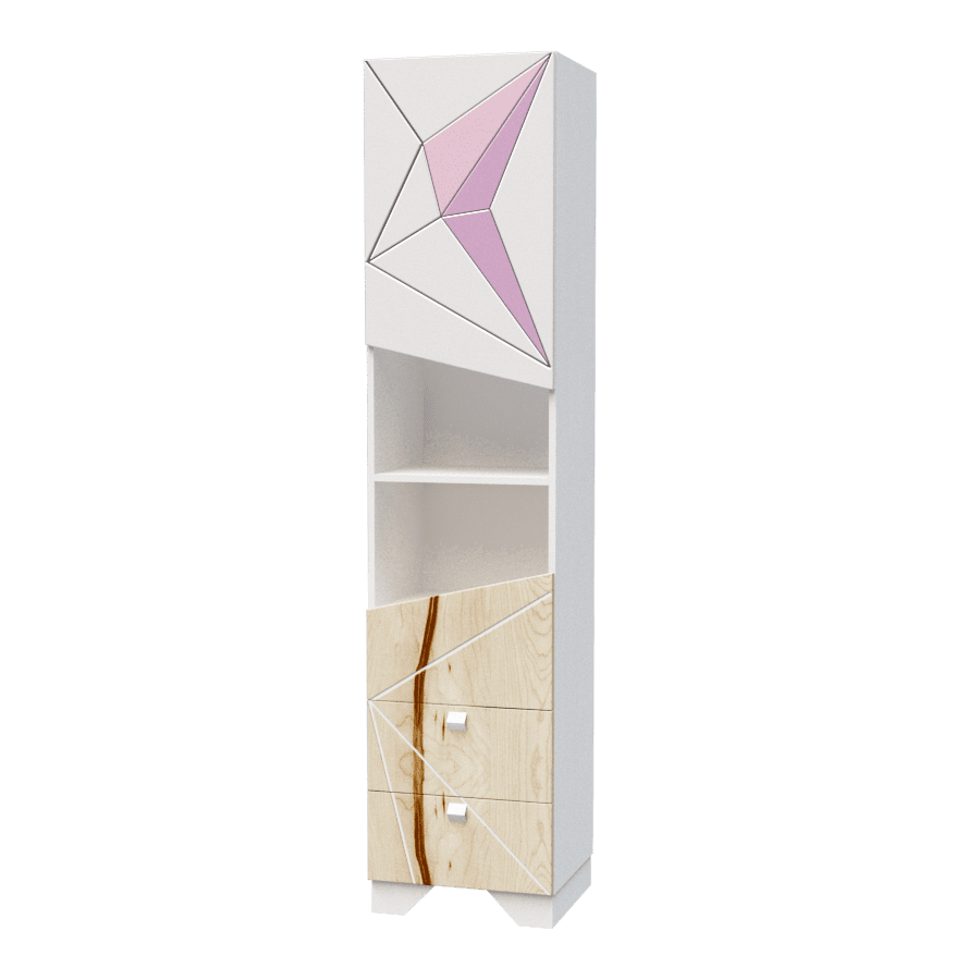 Фасад: МДФ завтовшки 19мм. мальований з поєднанням деревотекстурного ДСП Swisspan natur, малюнок трафаретний з фрезерованим патинуванням.
