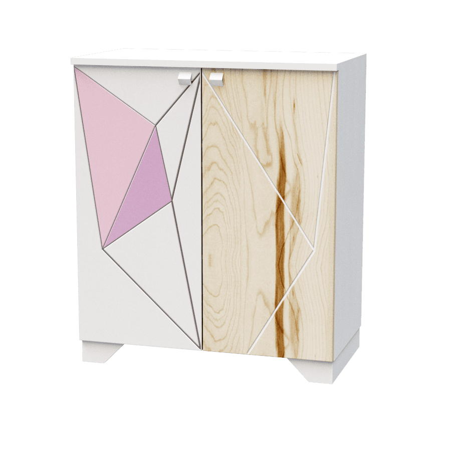 Фасад: МДФ завтовшки 19мм. мальований з поєднанням деревотекстурного ДСП Swisspan natur, малюнок трафаретний з фрезерованим патинуванням.