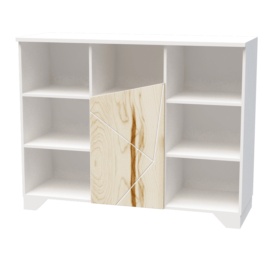 Фасад: МДФ завтовшки 19мм. мальований з поєднанням деревотекстурного ДСП Swisspan natur, малюнок трафаретний з фрезерованим патинуванням.