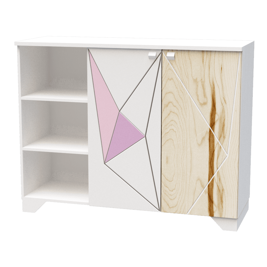 Фасад: МДФ завтовшки 19мм. мальований з поєднанням деревотекстурного ДСП Swisspan natur, малюнок трафаретний з фрезерованим патинуванням.