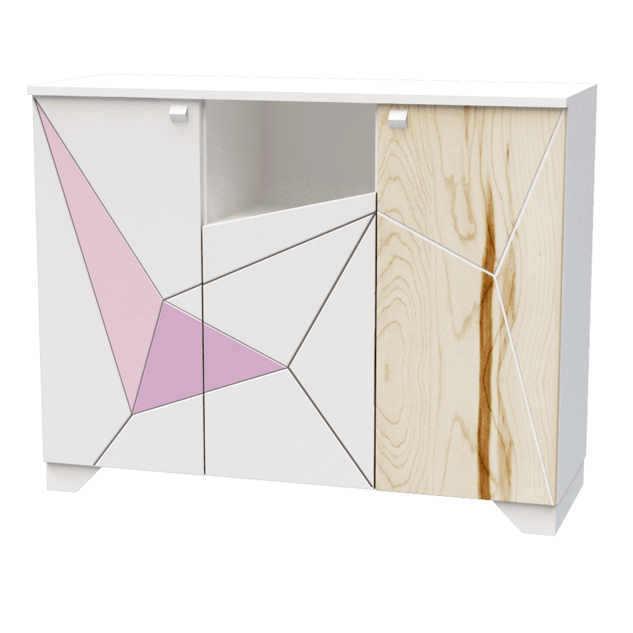 Фасад: МДФ завтовшки 19мм. мальований з поєднанням деревотекстурного ДСП Swisspan natur, малюнок трафаретний з фрезерованим патинуванням.