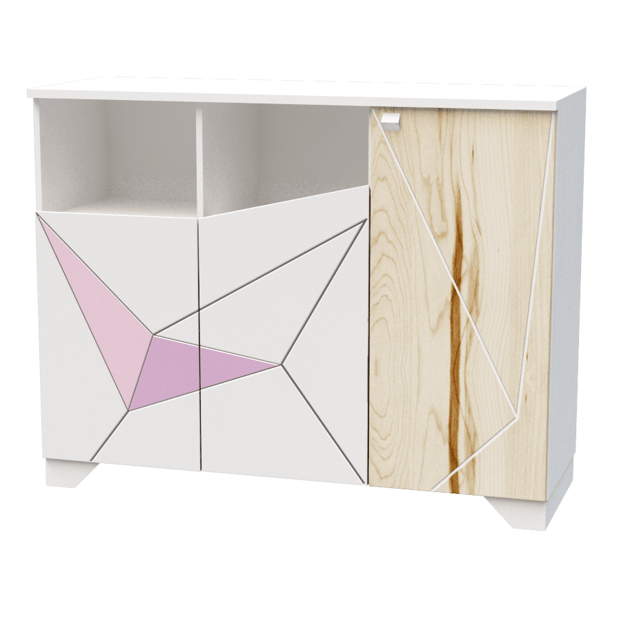 Фасад: МДФ завтовшки 19мм. мальований з поєднанням деревотекстурного ДСП Swisspan natur, малюнок трафаретний з фрезерованим патинуванням.