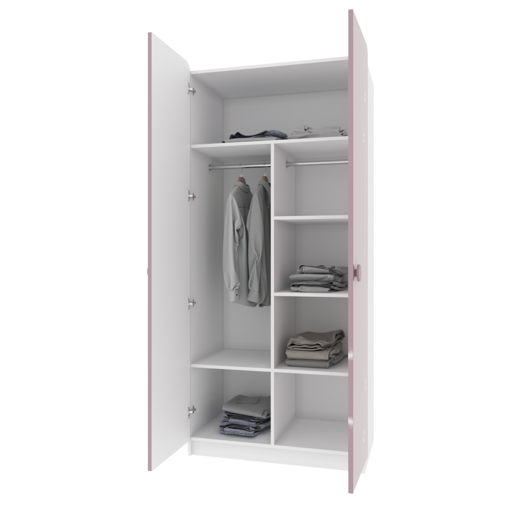 - всередині шафа розділена на штанги (короткий одяг) та полиці;