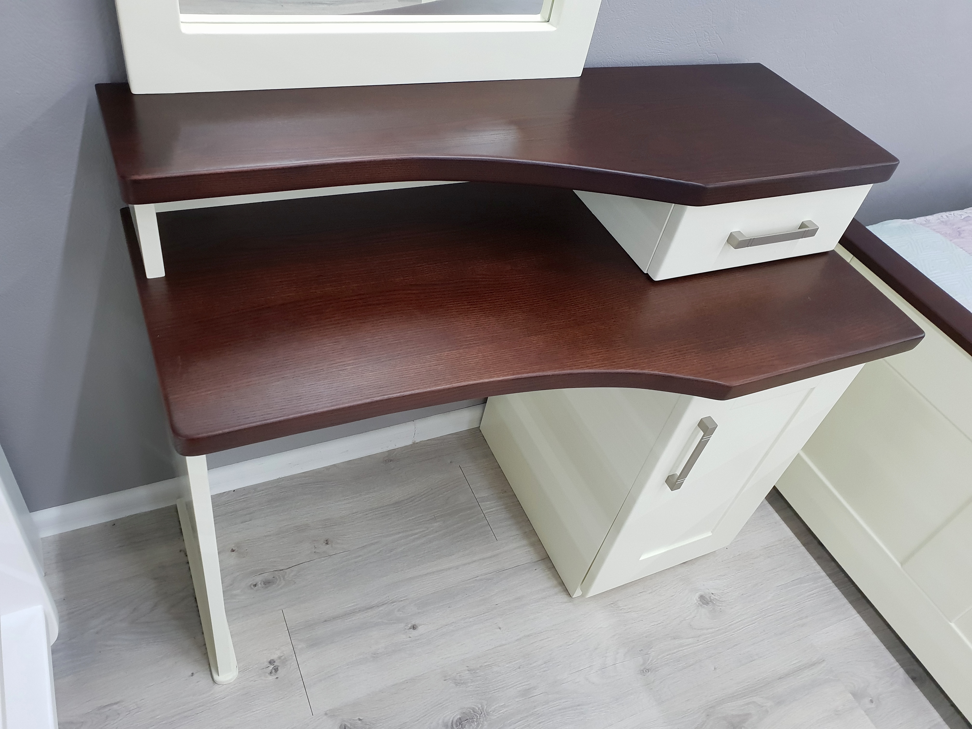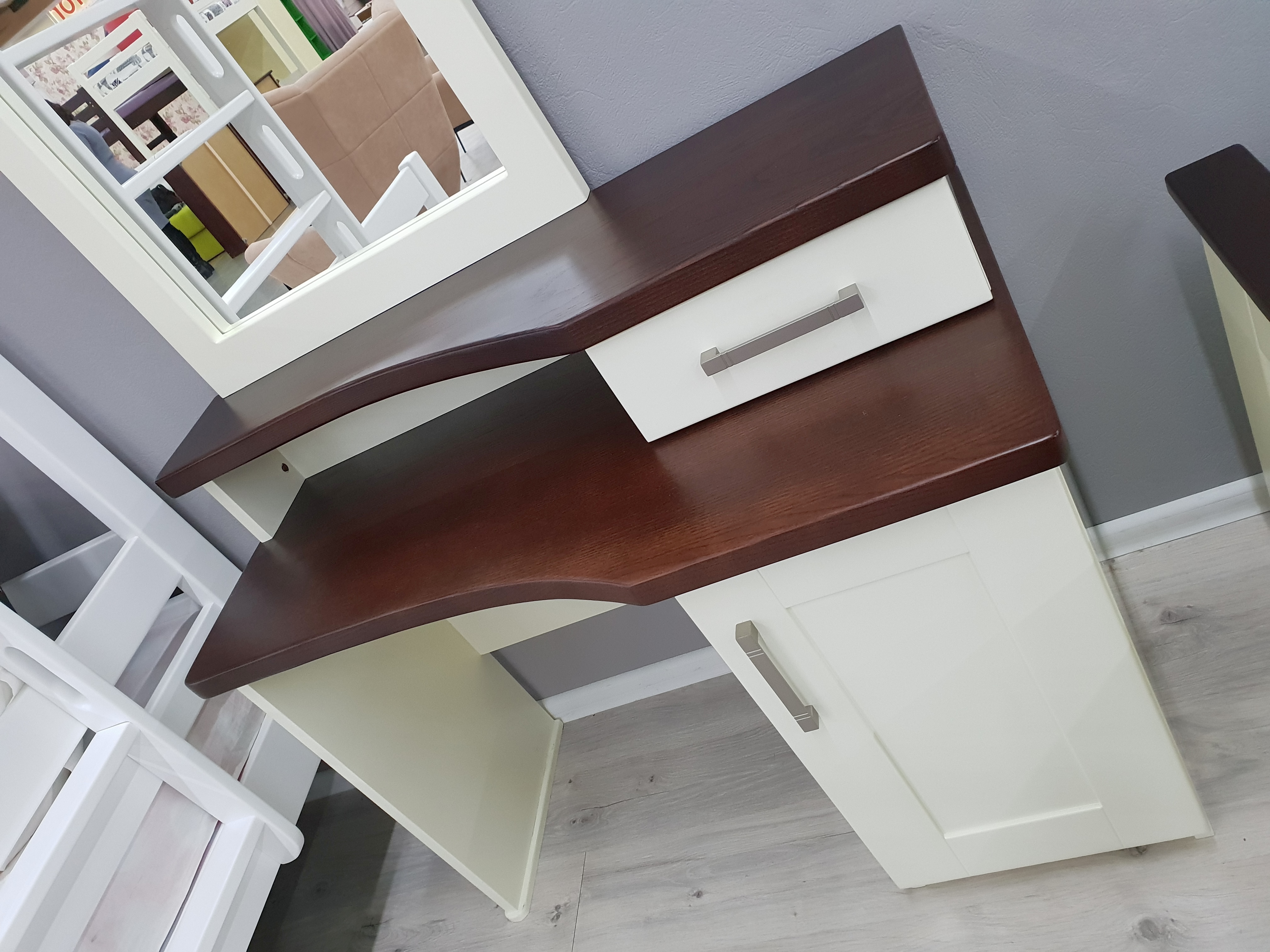 Корпус комода "Флорида" виготовлений із масиву вільхи, стільниця із масиву ясена. За бажанням замовника може бути виготовлений в одному кольорі або в комбінації 20 відтінків дерева.