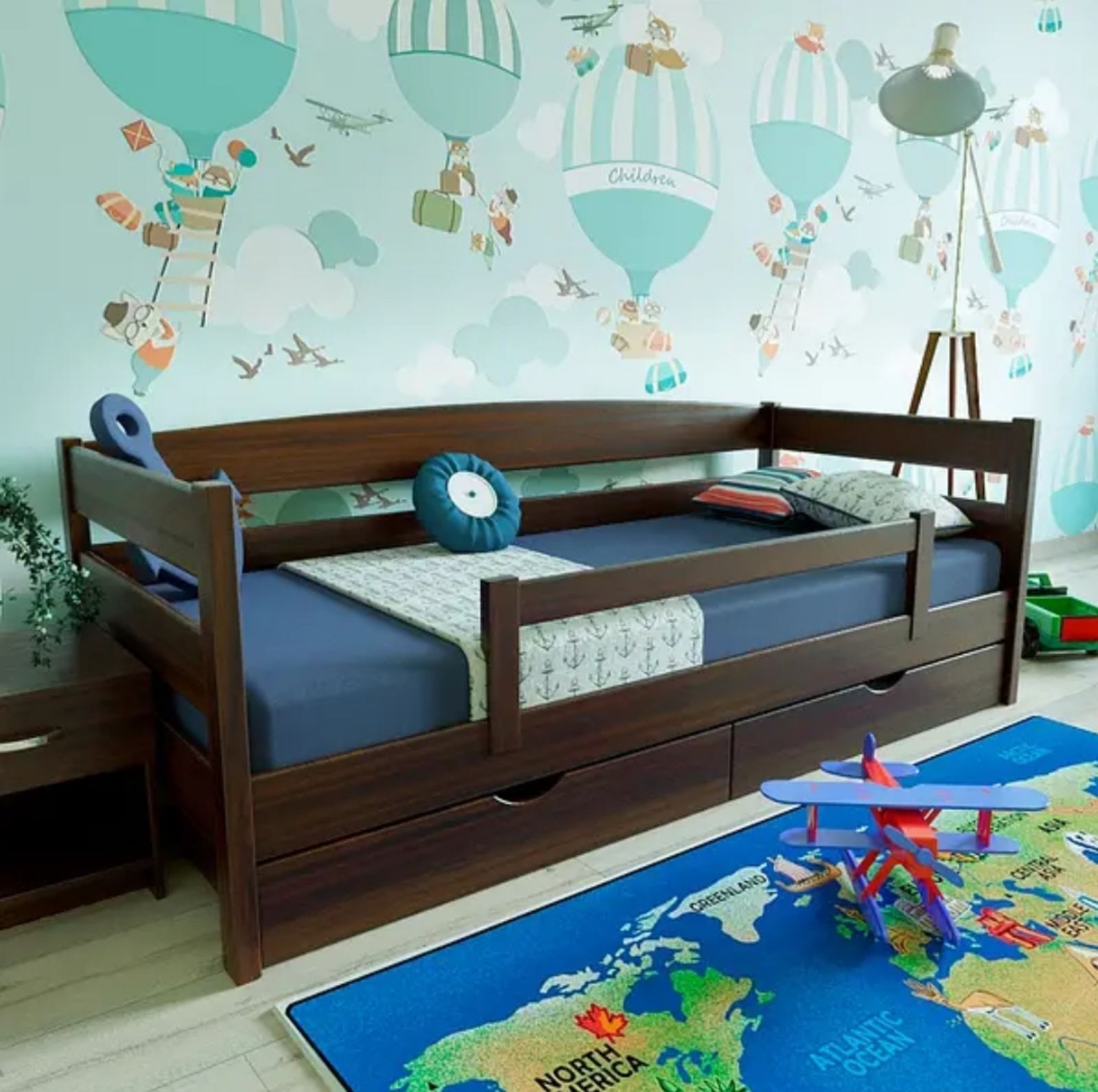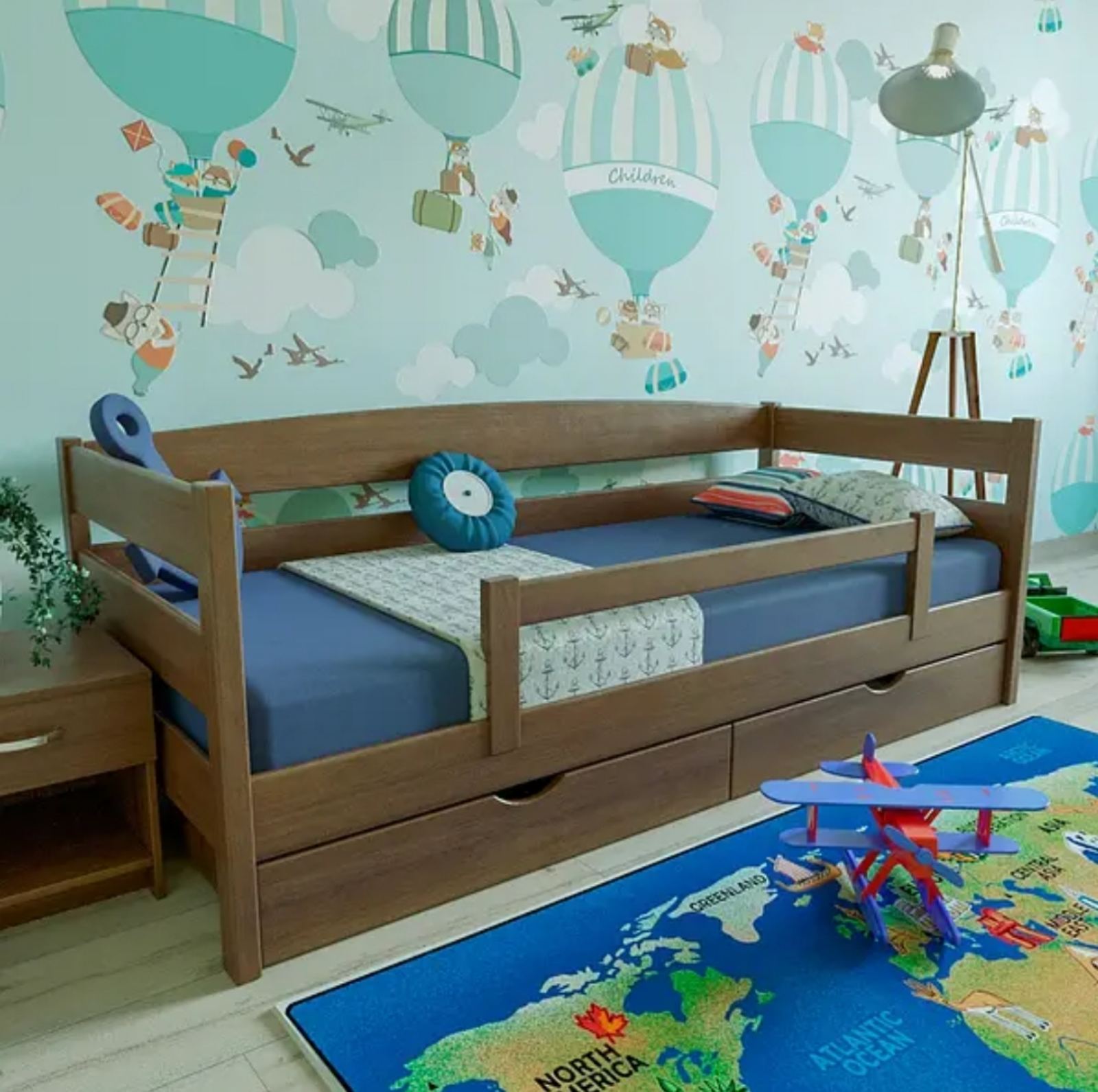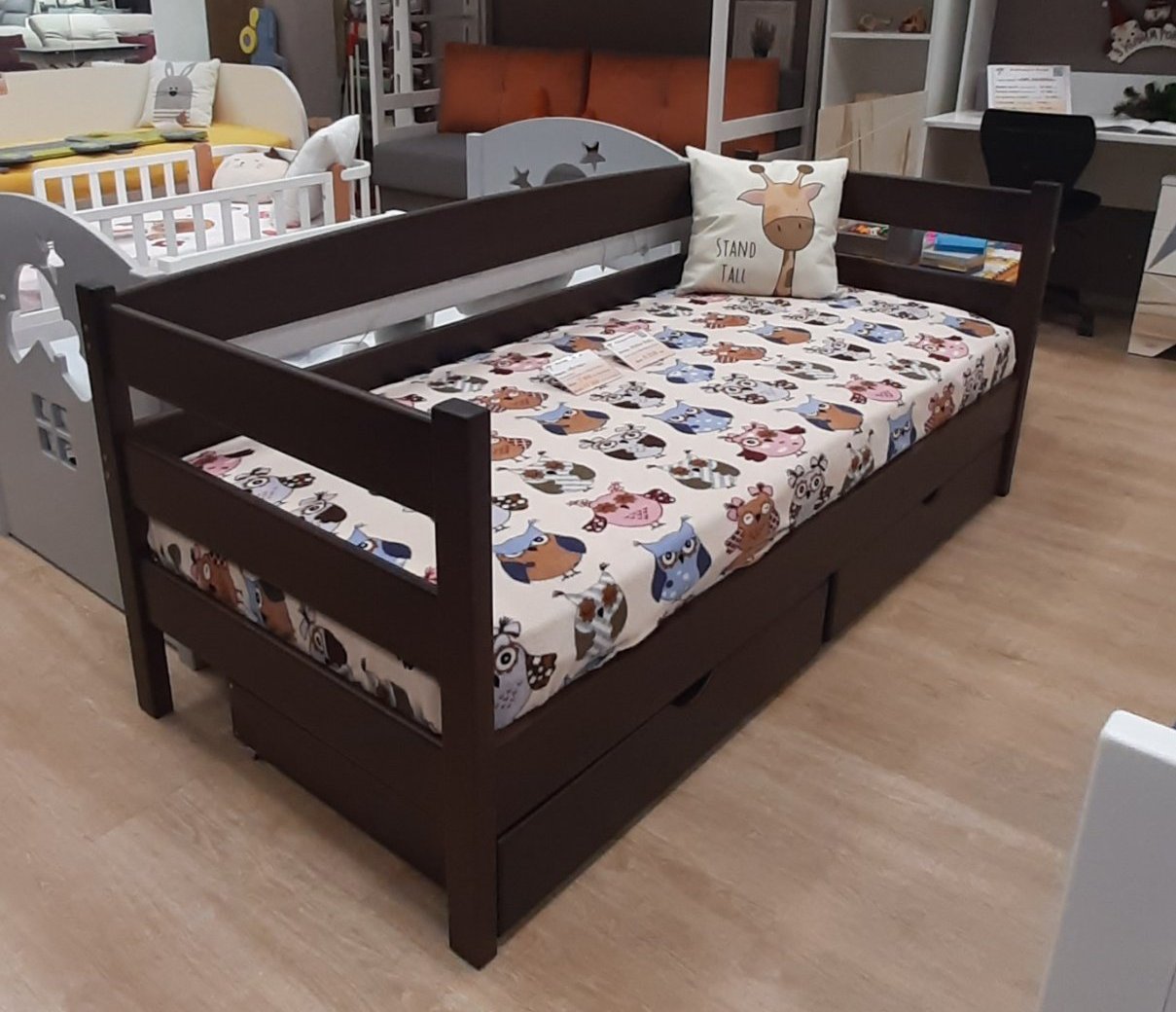 Односпальне ліжко "Естер" вироблено з натуральної деревини вільха. Ліжко комплектується викотними шухлядами, за бажанням є можливість додати захисний бортик від падіння. Пофарбоване натуральними італійськими фарбами.