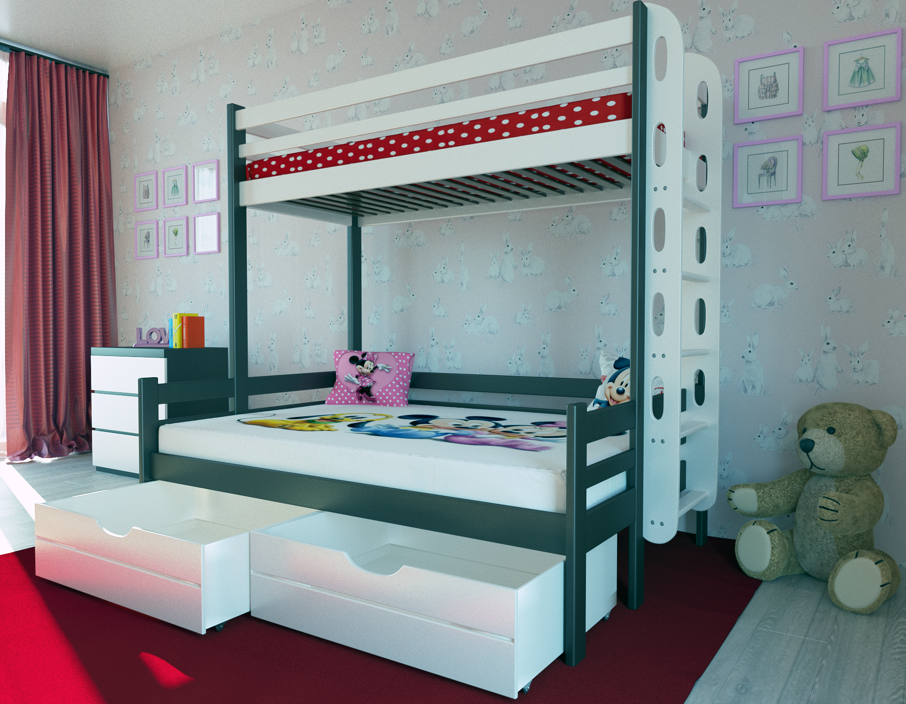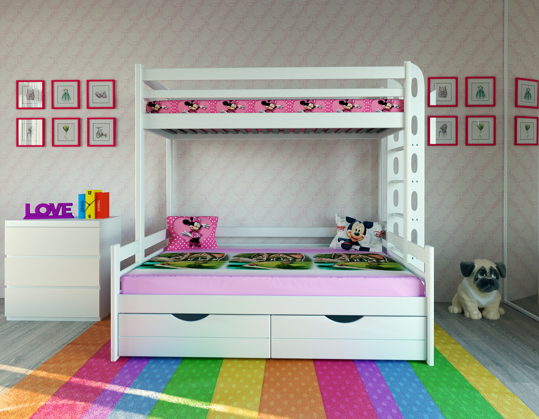 Широке нижнє спальне місце врятує в будь-якій ситуації: тепер бабуся зможе залишитися в гостях довше, мама чи тато зможуть прилягти до дитини почитати казку, а ще на такому просторі комфортно буде діткам, які сплять як зірочки!