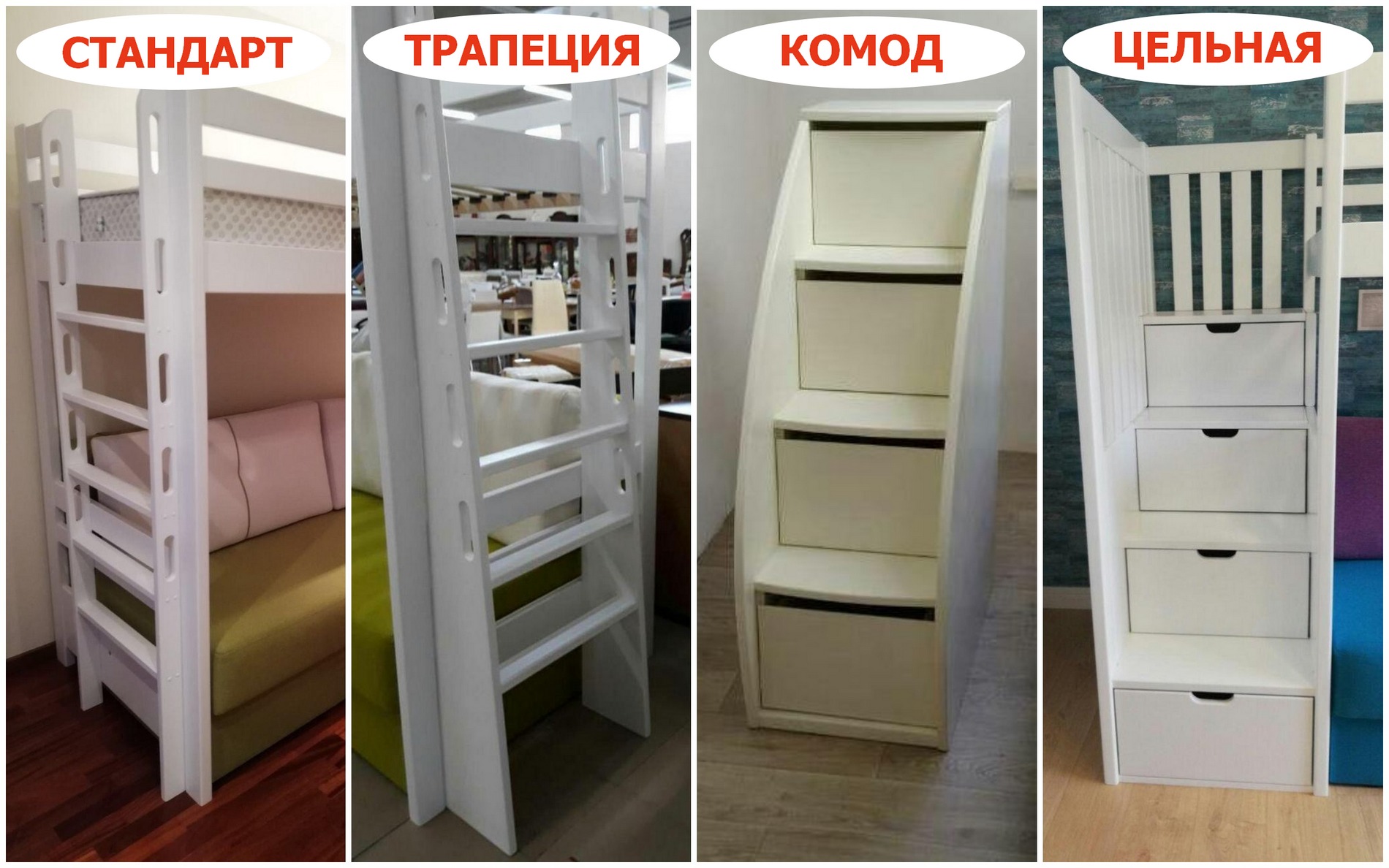 Для того щоб дізнатися габаритний розмір ліжка з різними сходами, до довжини спального місця додайте:
