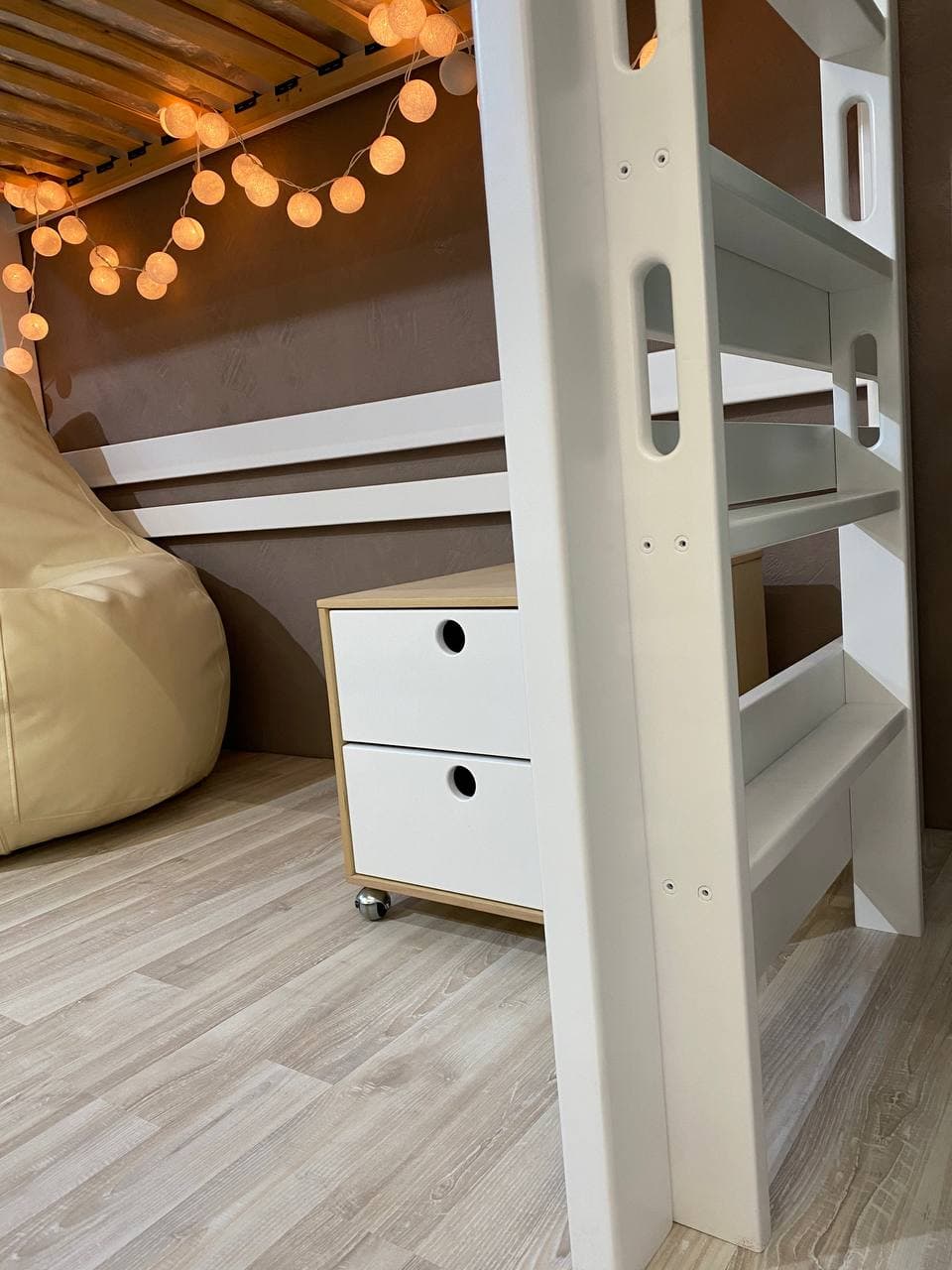 • Закруглені кромки всіх частин ліжка, високі борти на верхньому ярусі роблять використання безпечним для дітей;