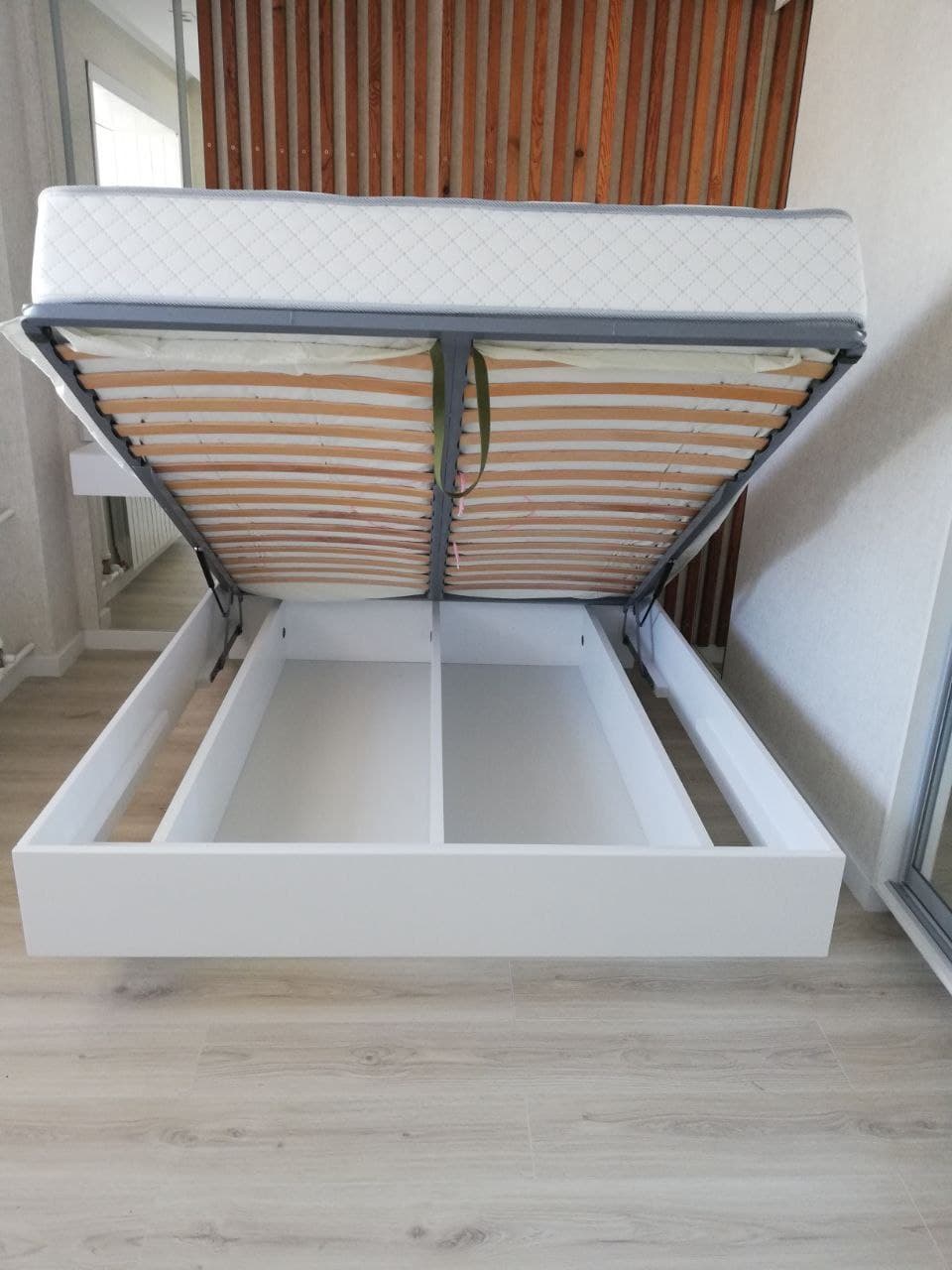 Підйомний механізм: Використання підйомного механізму робить це ліжко надзвичайно практичним. Завдяки йому, верхня частина ліжка легко піднімається, використовуючи доступний простір під ліжком для зберігання одягу, постільної білизни та інших речей.