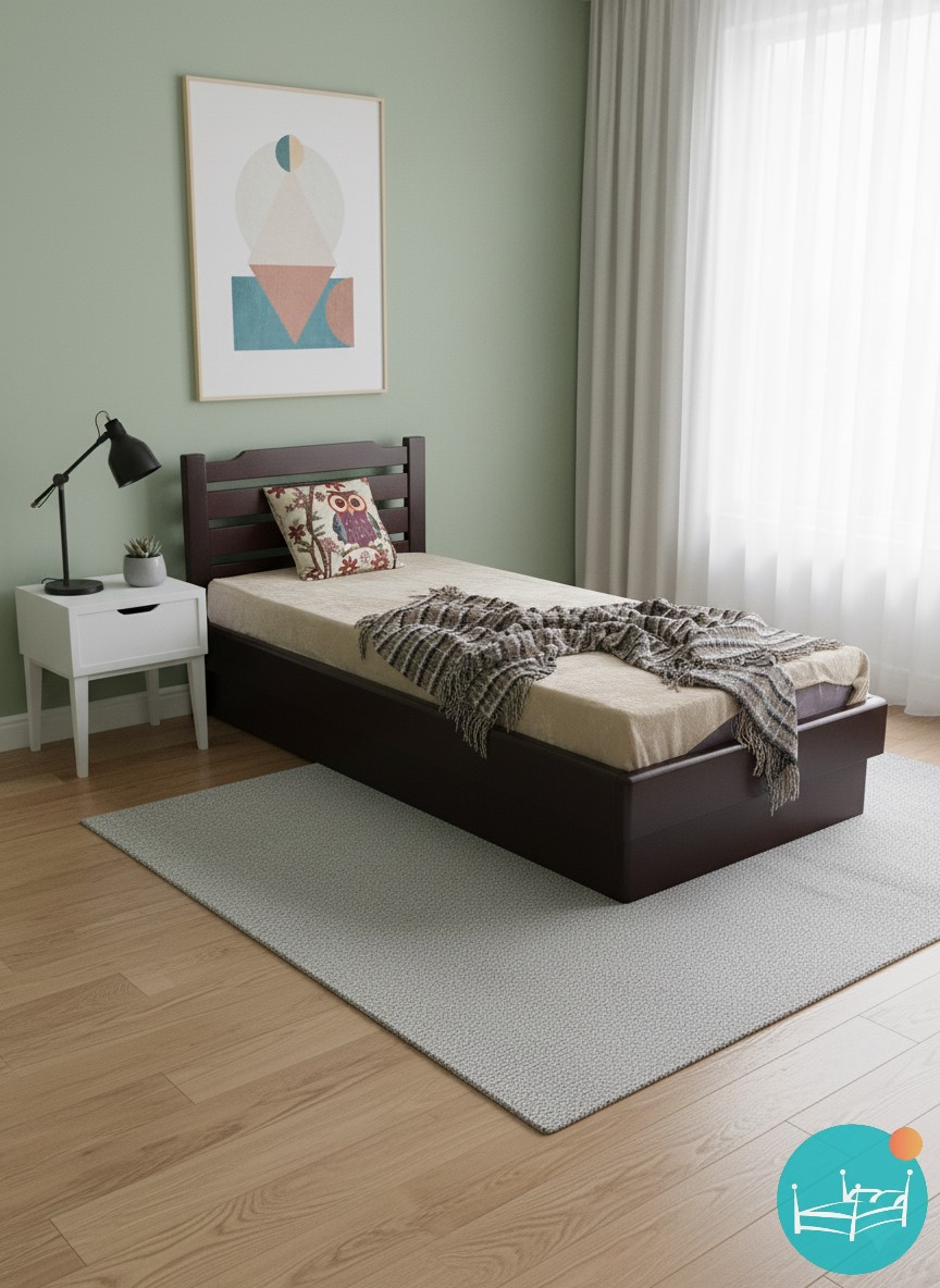 Функціональність: Дерев'яне ліжко з підйомним механізмом є ідеальним вибором для тих, хто бажає оптимізувати простір у спальні. Завдяки підйомному механізму, ліжко стає відмінним місцем для зберігання різних речей, що допомагає зберегти порядок і чистоту у кімнаті.