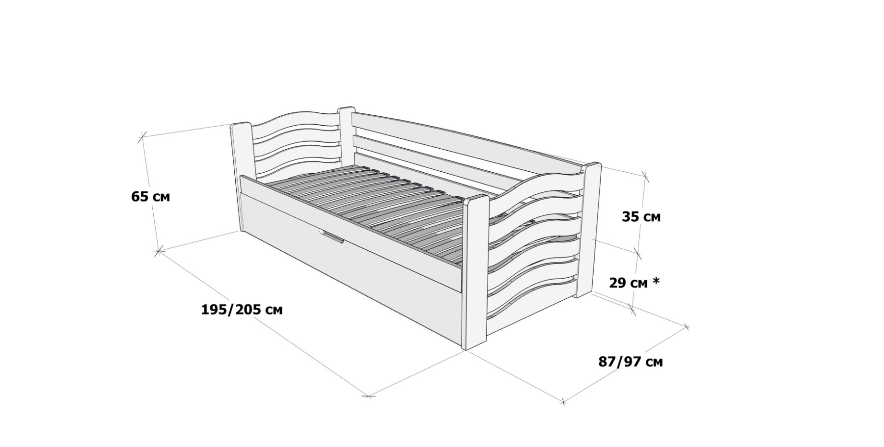 Доступні розміри: 80х190/200 або 90х190/200 (можливі інші розміри – 160, 170, 180 см)