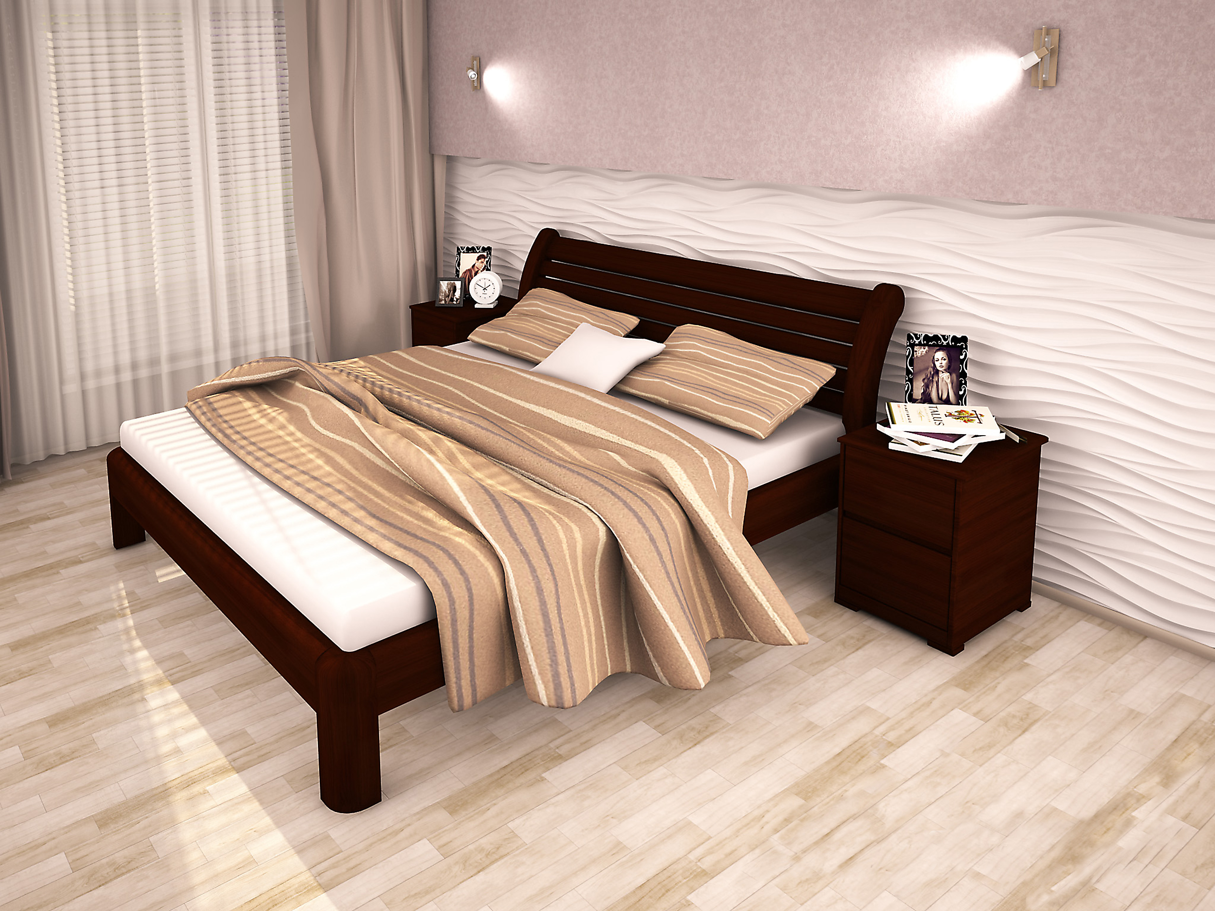 Ліжко з натурального дерева "Міленіум", за бажанням, може комплектуватися ящиками (цілком дерев'яними).
