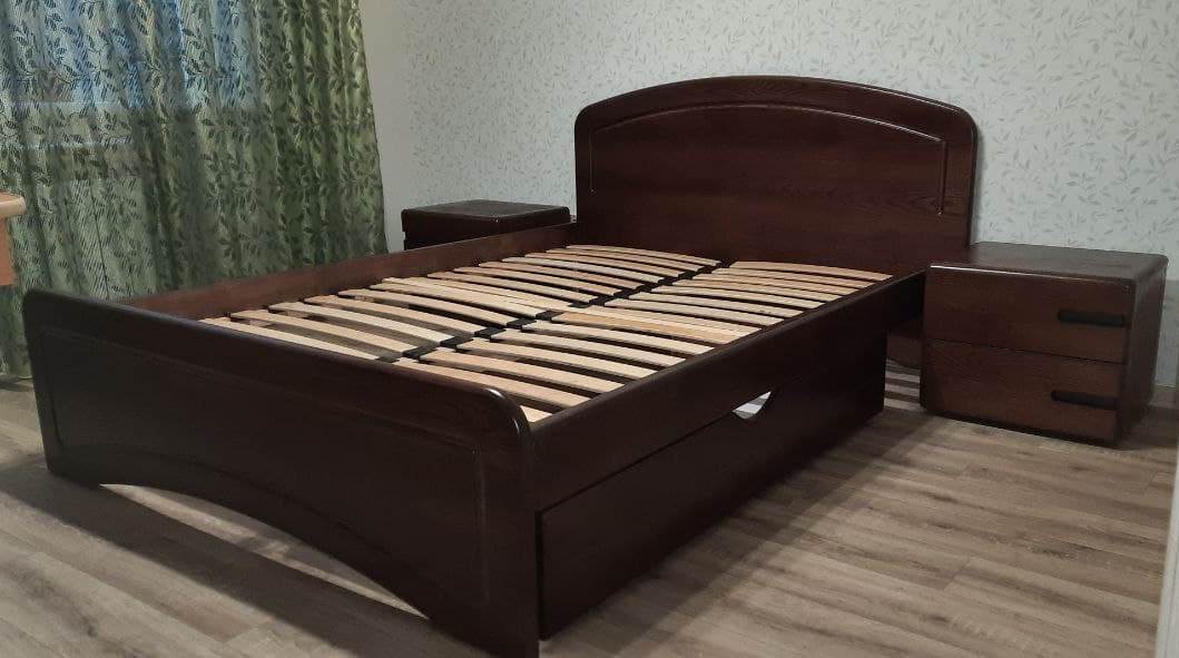 Для виготовлення ліжка Нега Плюс використовується масив натурального дерева найвищої якості - вільхи товщиною 40 мм або ясеня товщиною 35 мм. Висота спального місця ліжка - близько 45см.(залежить від обраного вами матраца)