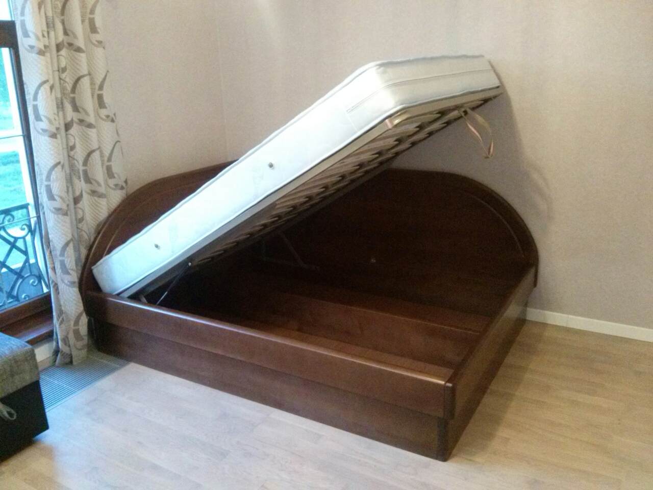 Приобрели кровать Юта с подъемным механизмом 3 месяца назад. Размер нашего спального места 180х200 см. Да, любим мы с мужем простор) Кровать нас сразу порадовала в первую очередь внешним видом. Качество отличное (ожидания почему-то были хуже). Выглядит действительно как на картинке в интернет-магазине СпроСоня, где совершали покупку. .