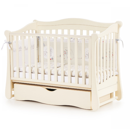 - дно ліжечка виготовлено з ортопедичних ламелей, які забезпечують достатню вентиляцію матраца і постільної білизни;
