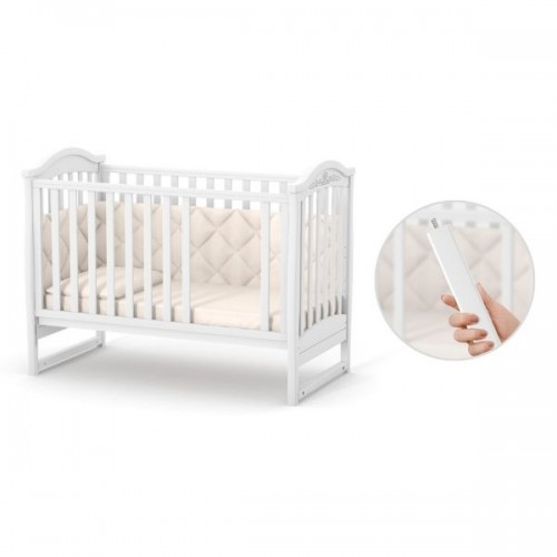 - унікальна система фіксації рухомого огородження відповідає вимогам найновішого Європейського стандарту безпеки EN 716 - 2017 року. Рухоме огородження фіксується як у верхньому, так і в нижньому положенні. Система фіксації робить неможливим для дитини самостійно опустити чи підняти рухоме огородження;
