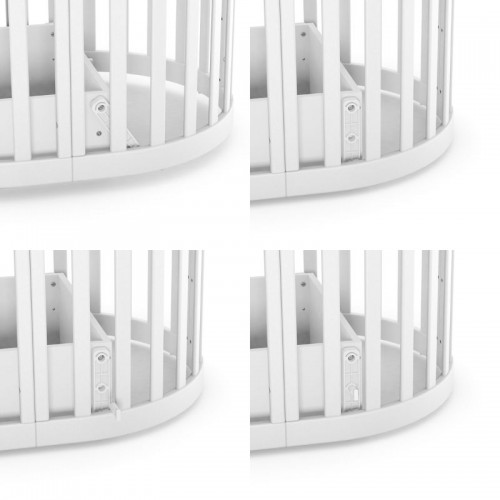 - чотири рівні установки спального місця: 9,5 / 25,5 / 41,5 / 54,5 см (від підлоги до верхньої точки підматрацника, коли ліжечко без маятника і колес); спрощений монтаж та зміна рівнів установки підматрацнику;