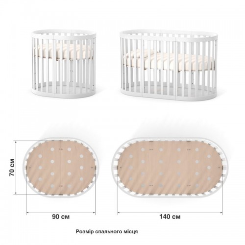 * комплект розширення: комплект елементів, що трансформують ліжечко зі спальним місцем 90*70 см у ліжко зі спальним місцем 140*70 см.