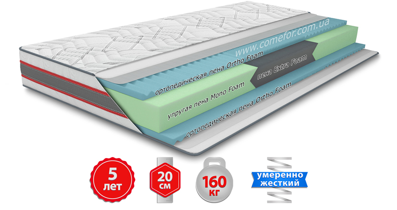 Тип безпружинного блоку матраца: Mono Foam/Extra Foam