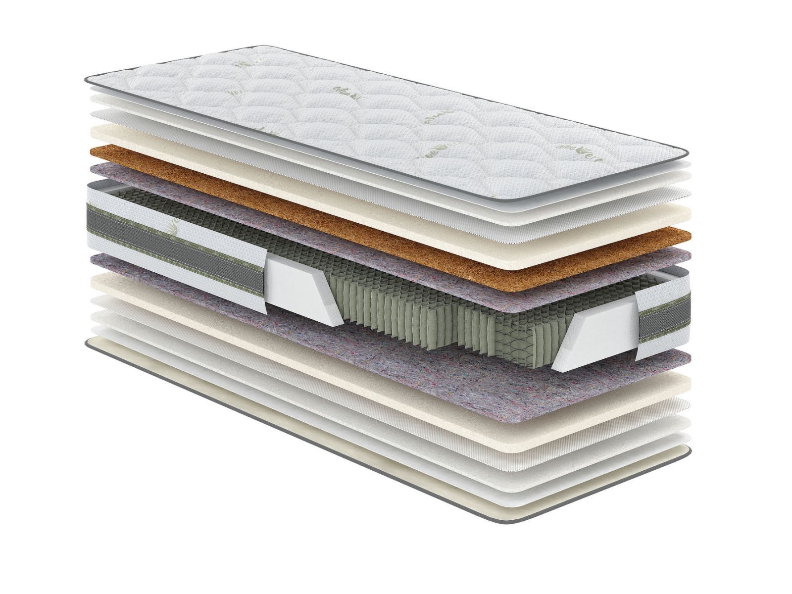 На особливу увагу заслуговують матеріали, з яких виготовлений матрац. Слід зазначити, що всі матеріали натуральні, екологічні, сертифіковані. Завдяки використанню тільки високоякісних матеріалів та розумному їх поєднанню, матраци ALOE VERA стійкі до пилового кліща, екологічно чисті та чудово підходять для людей, схильних до алергічних реакцій.