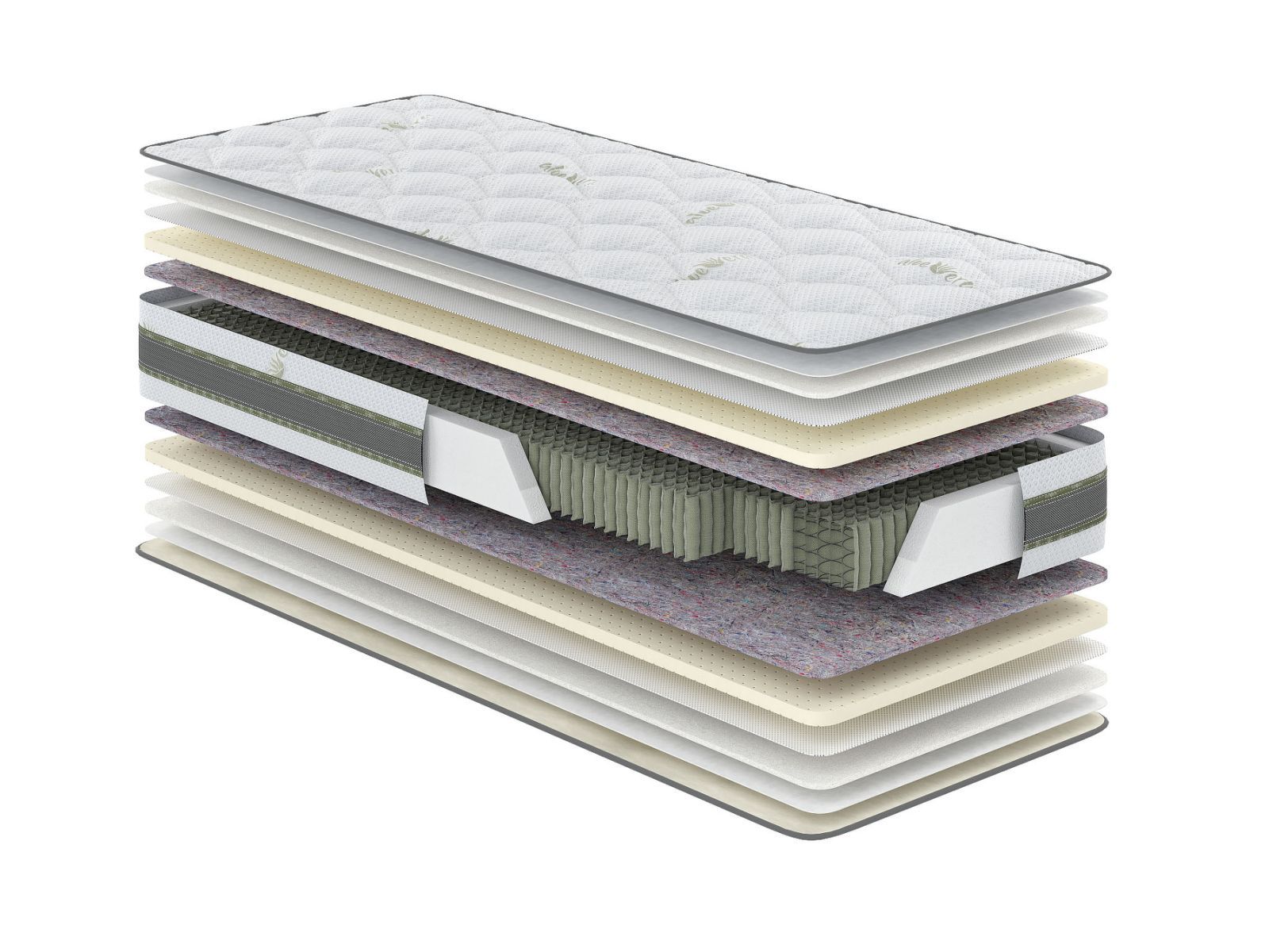 На особливу увагу заслуговують матеріали, з яких виготовлений матрац. Слід зазначити, що всі матеріали натуральні, екологічні, сертифіковані. Завдяки використанню тільки високоякісних матеріалів та розумному їх поєднанню, матраци ALOE VERA стійкі до пилового кліща, екологічно чисті та чудово підходять для людей, схильних до алергічних реакцій.