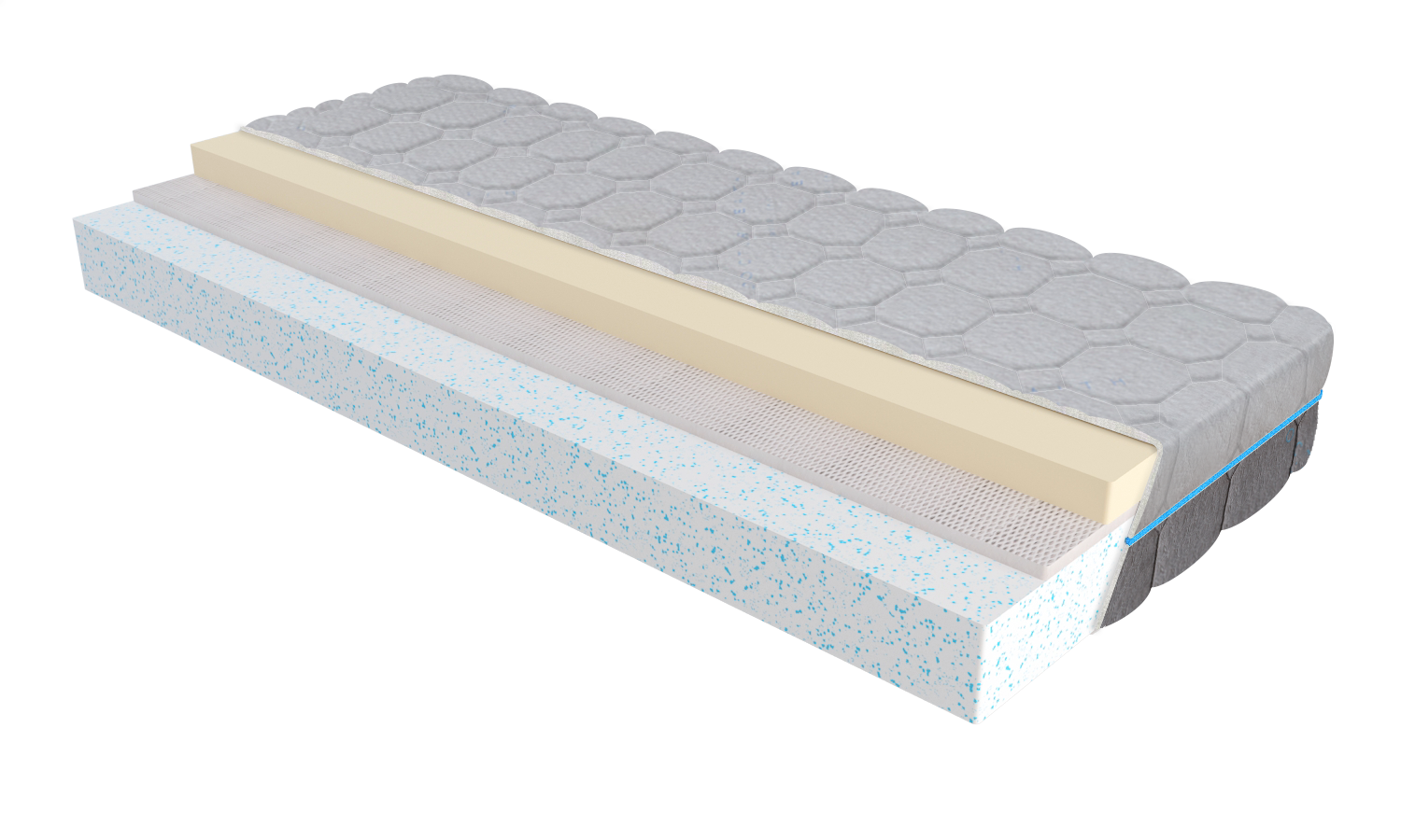 Інноваційний матеріал, що поєднує найкращі властивості піни високої щільності та гранул термогеля. Таке поєднання забезпечує першокласну підтримку хребта та максимальне розслаблення. Гранули термогеля у складі ортопедичної піни збільшують її еластичність, підвищуючи стійкість до деформації, та прискорюють відновлення форми після експлуатації матраца. Гранули гелю підсилюють терморегуляційні властивості матеріалу, вбираючи надлишок тепла, підтримуючи комфортний температурний режим під час сну. Попереджає порушення обміну речовин та забезпечує оптимальний рівень комфорту під час сну.