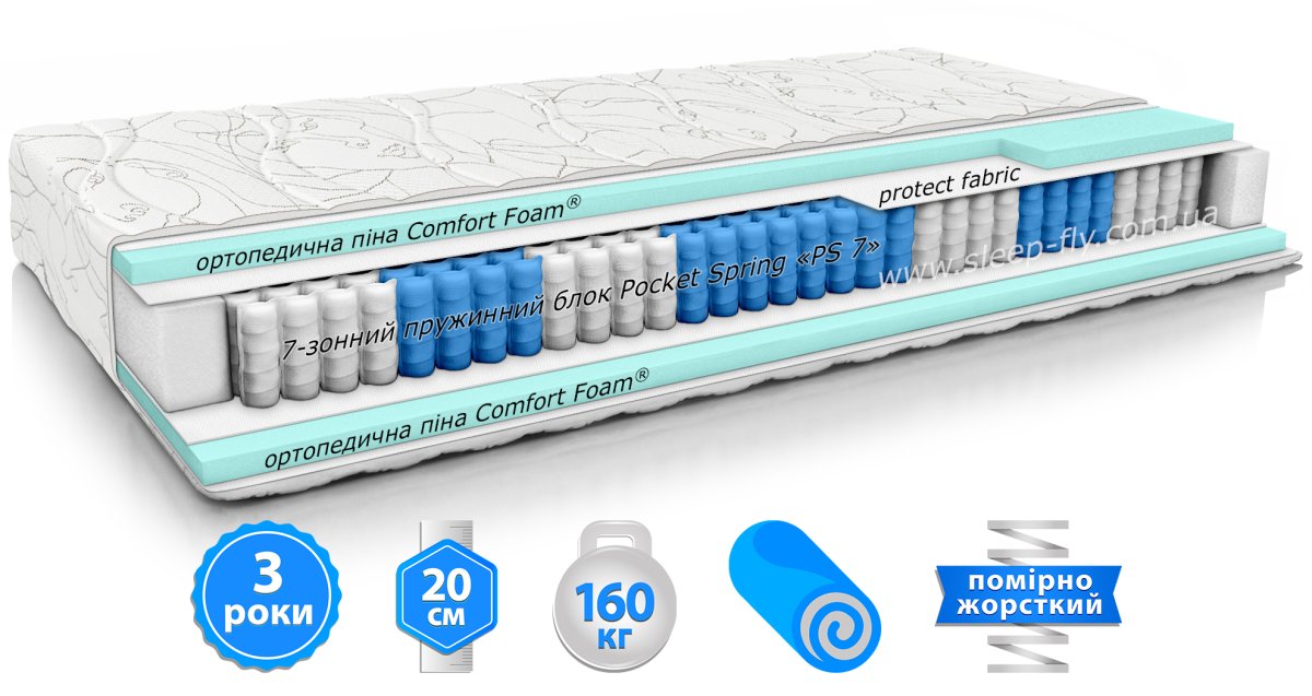 Pocket system «7 PS» - семизональний пружинний блок, в якому кожна пружина працює незалежно одна від одної.