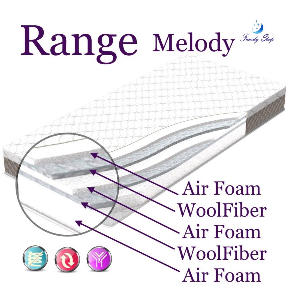 Матраци Melody collection Family Sleep забезпечують ортопедичний ефект і в залежності від комбінації матеріалів пропонують різні рівні комфорту, мають більш високу стійкість до деформації і продавлювання.