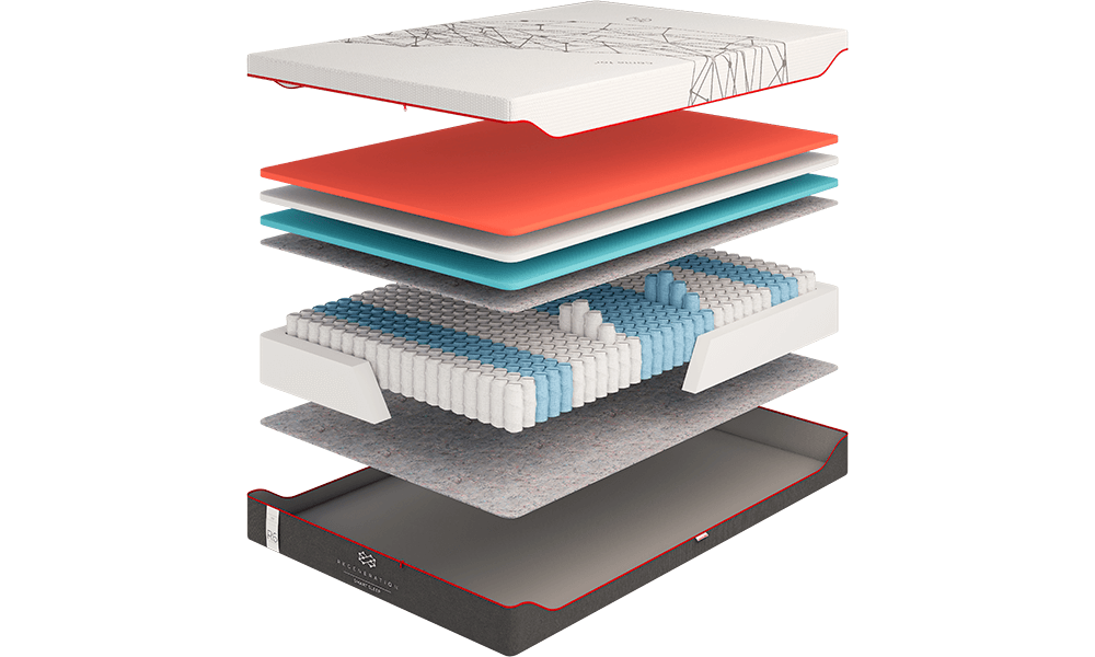 Ортопедичний матрац Regeneration R 6 висотою 26 складається з удосконаленого блоку незалежних пружин Pocket Spring Sky 7 та гіпоалергенних настилкових шарів. Тут цілих 7 зон жорсткості, які абсолютно точно адаптуються під вашу фігуру і піклуються про правильне положення хребта. Термовілок ізолює пружинний блок, а тріо матеріалів Spring Foam, Soft Foam та Orto Foam створюють необхідний для відпочинку анатомічний ефект. Впроваджені в трикотаж молекули мінералів мають цілющу дію на сплячого. Це матрац середньої жорсткості, який приймає навантаження до 140 кг.