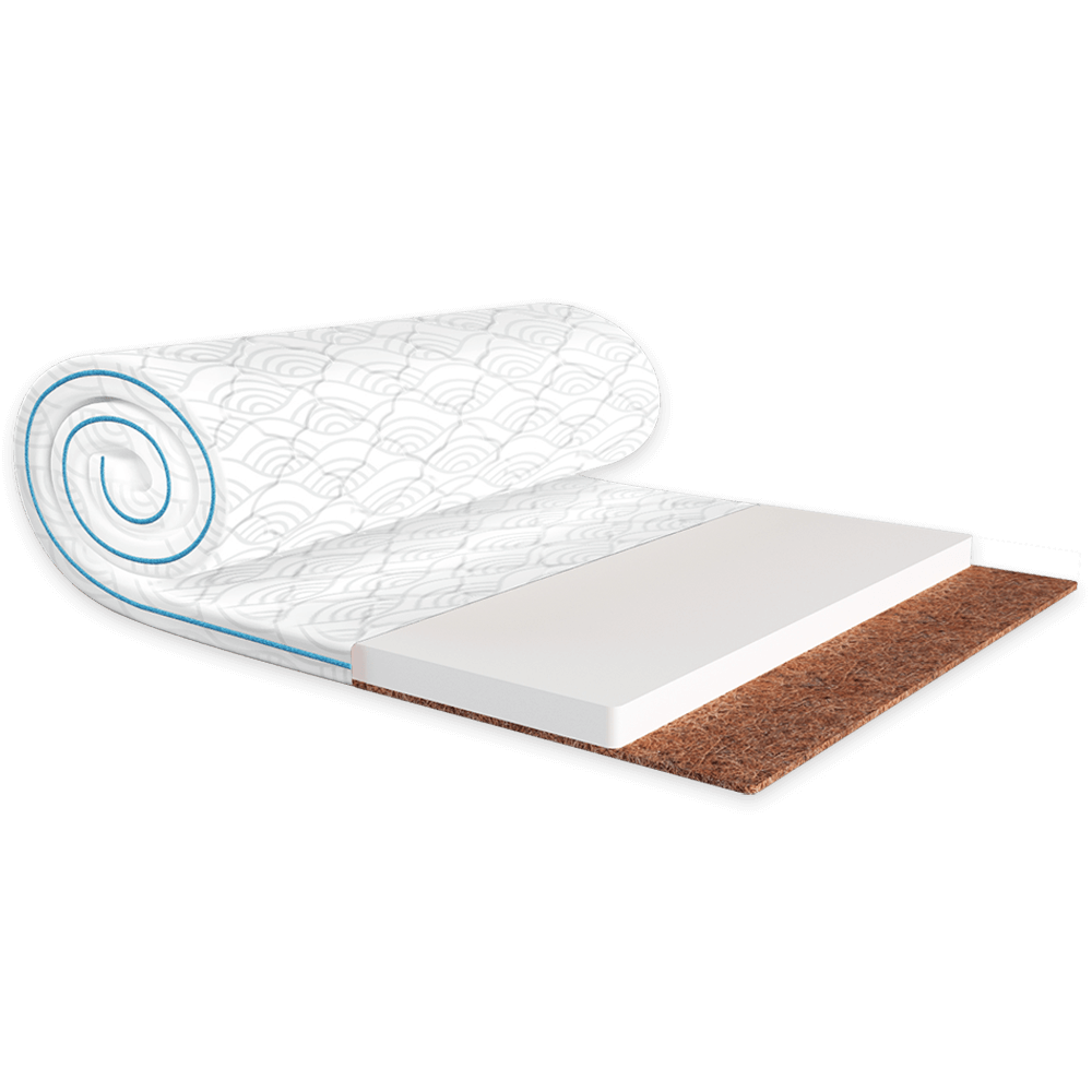 Топпер Flex 2в1 Kokos виготовлений на основі еластичної піни Ergoflex та кокосової койри. Використання різних за густиною наповнювачів забезпечило матрацу різнобічну жорсткість. Для зручності транспортування поставляється у вакуумній упаковці.