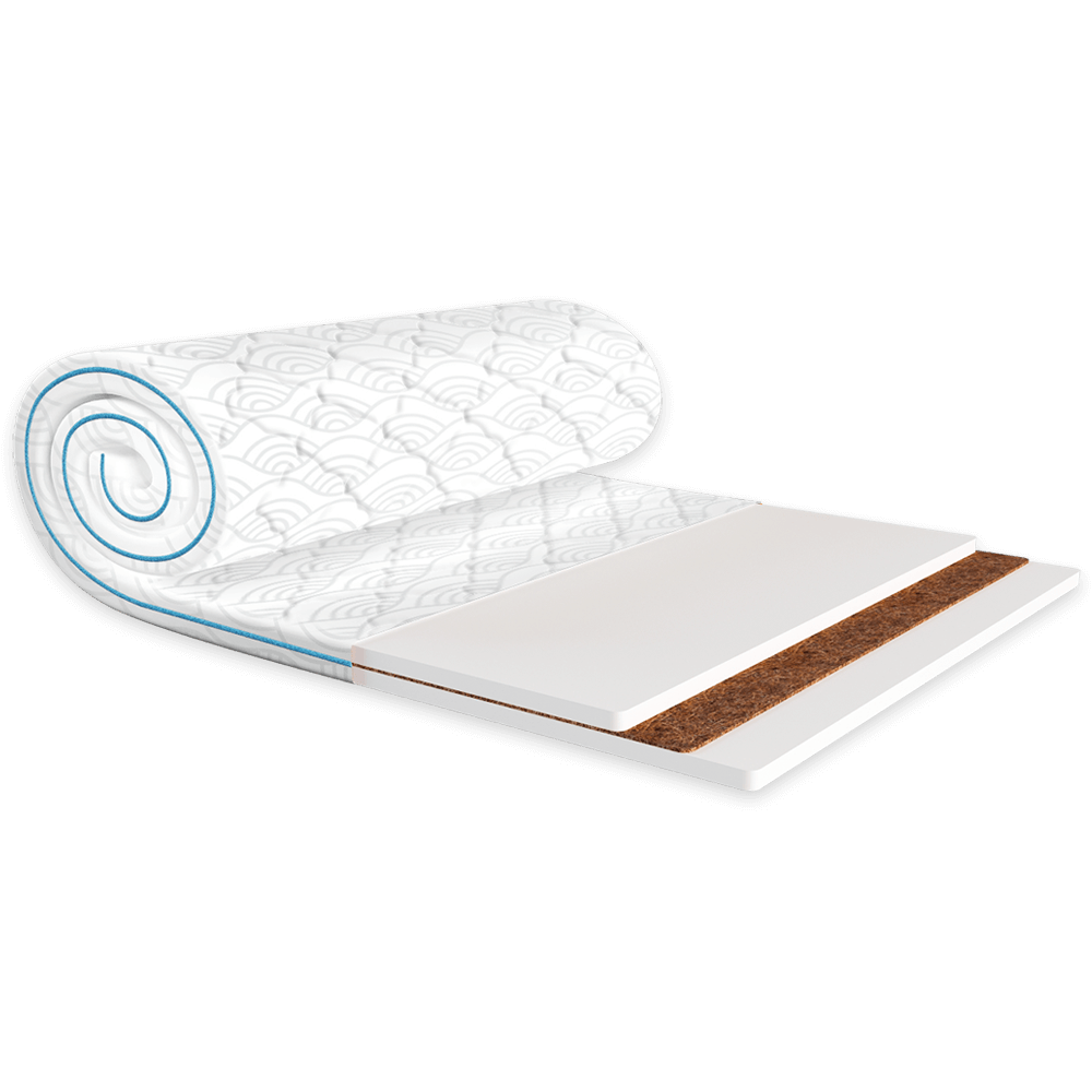 Топпер виготовлений на основі щільної та еластичної піни Ergoflex з невеликим прошарком усередині кокосової койри. Для зручності транспортування поставляється у вакуумній упаковці.