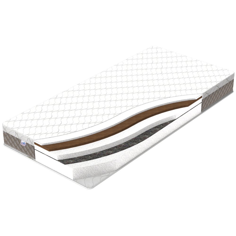 Комфортний двосторонній безпружинний матрац об'єднує в собі ідеальну ортопедичну підтримку і правильний анатомічний ефект в будь-якій позі сну. У складі наповнювачів латексована кокосова койра - натуральний і екологічний матеріал, має високу міцність і еластичність. Матрац забезпечить максимальний комфорт з легким відчуттям пружності, знімає м'язову напругу і розвантажить міжхребетні диски. Обидві сторони мають високі ортопедичні і анатомічні якості.